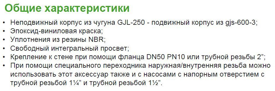 Донное соединительное устройство DAC с вертикальным напорным отверстием позволяет выполнять техническое обслуживание насоса без опорожнения резервуара, а также удерживает всасывающее отверстие насоса на оптимальной высоте. Корпус выполнен из чугуна, уплотнение из резины NBR.