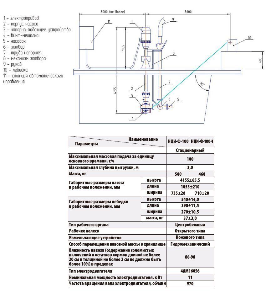 Насос центробежный с измельчителем НЦИ-Ф-100 предназначен для перемешивания и измельчения крупных примесей навоза в навозоприемнике, перекачивания навоза по трубопроводу в прифермские навозохранилища и погрузки навоза в транспортные средства, а так же для перекачки бытовых фекальных и производственных сточных вод с содержанием абразивных частиц по объему не более 1% кроме нефтепродуктов.