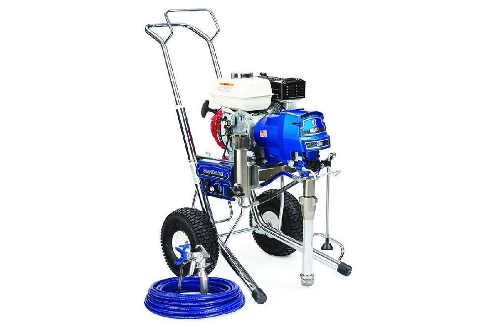 Окрасочный аппарат приводится в действие от двигателя Honda и дополнительных элементов, повышающих производительность. В устройстве для покраски GRACO GMAX II 3900 Standart используется технология безвоздушного распыления. Она позволяет обрабатывать поверхности на расстоянии до 90 метров от краскозаборника без потерь расходного материала за счет отсутствия пылевого облака.