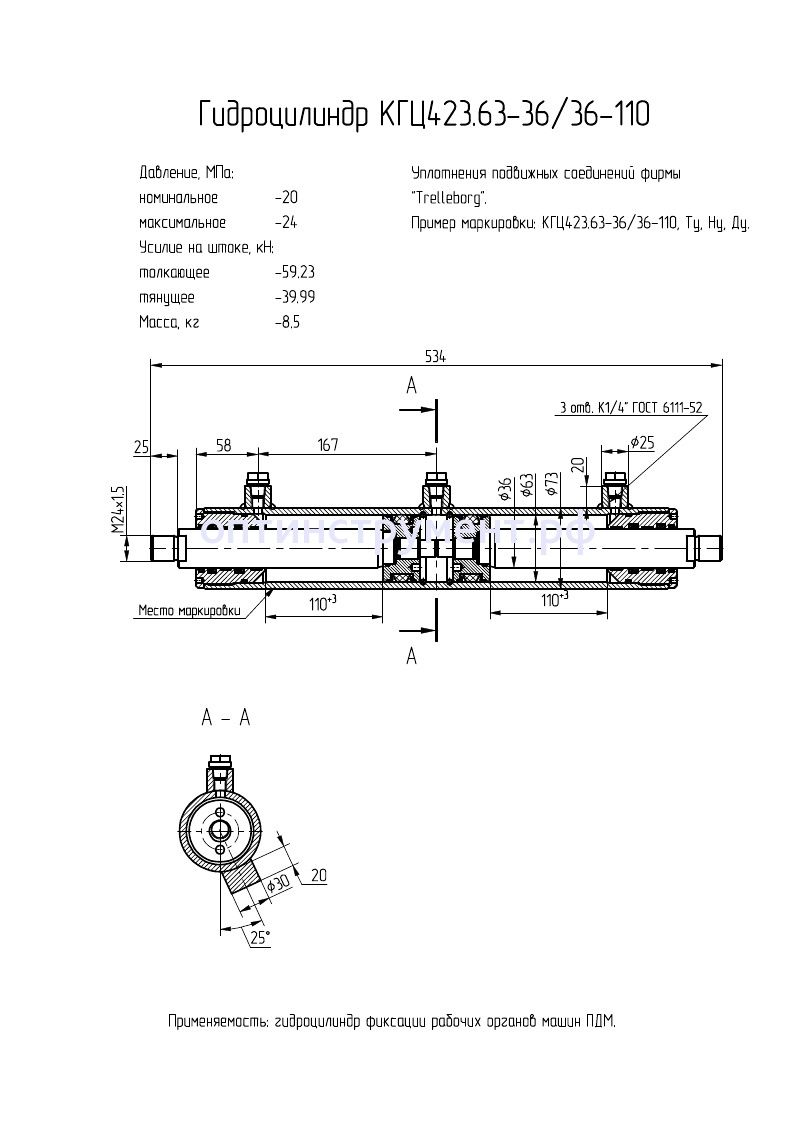 Гидроцилиндр фиксации рабочих органов машин "ПДМ" КГЦ 423.63-36.36-110 в продаже по цене 0 руб. в Интернет-магазине Проф-инструмент с доставкой в Оренбурге и Оренбургской области. Звоните по телефону +8 (800) 302-10-51.