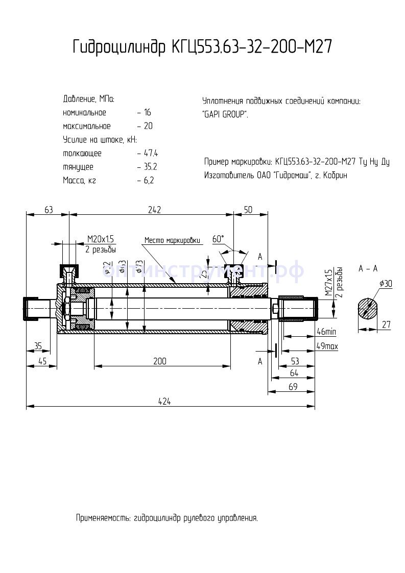 Гидроцилиндр рулевого управления КГЦ 553.63-32-200-М27 в продаже по цене 6 900 руб. в Интернет-магазине Проф-инструмент с доставкой в Оренбурге и Оренбургской области. Звоните по телефону +8 (800) 302-10-51.