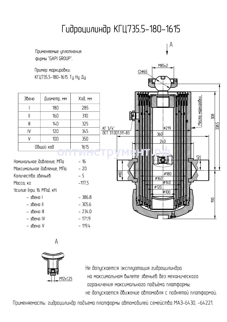 Гидроцилиндр КГЦ 735.5-180-1615 в продаже по цене 86 790 руб. в Интернет-магазине Проф-инструмент с доставкой в Оренбурге и Оренбургской области. Звоните по телефону +8 (800) 302-10-51.