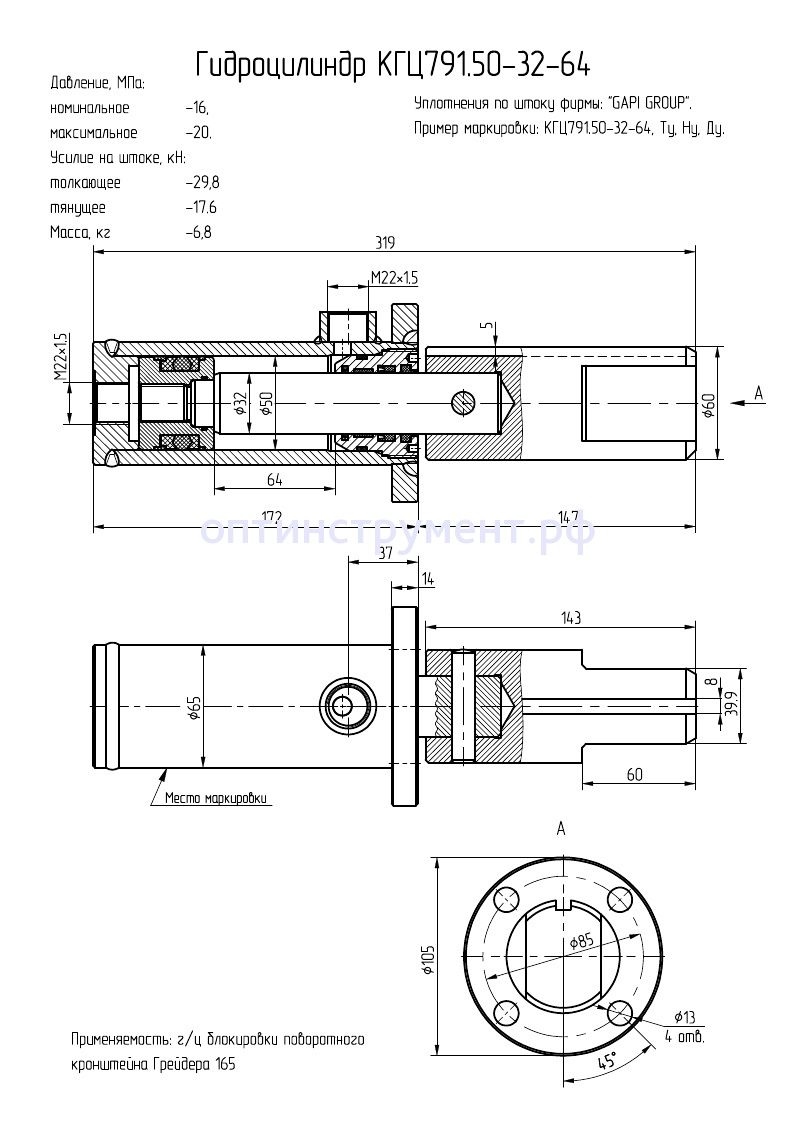 Гидроцилиндр блокировки поворотного кронштейна (автогрейдера 165) КГЦ 791.50-32-64 в продаже по цене 9 720 руб. в Интернет-магазине Проф-инструмент с доставкой в Оренбурге и Оренбургской области. Звоните по телефону +8 (800) 302-10-51.