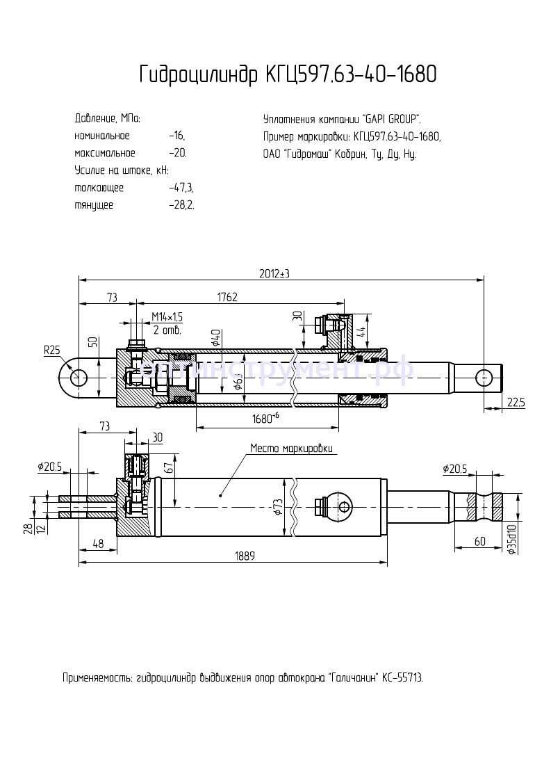 Гидроцилиндр выдвижения опор автокрана "Галичанин КС-55713" КГЦ 597.63-40-1680 в продаже по цене 18 810 руб. в Интернет-магазине Проф-инструмент с доставкой в Оренбурге и Оренбургской области. Звоните по телефону +8 (800) 302-10-51.
