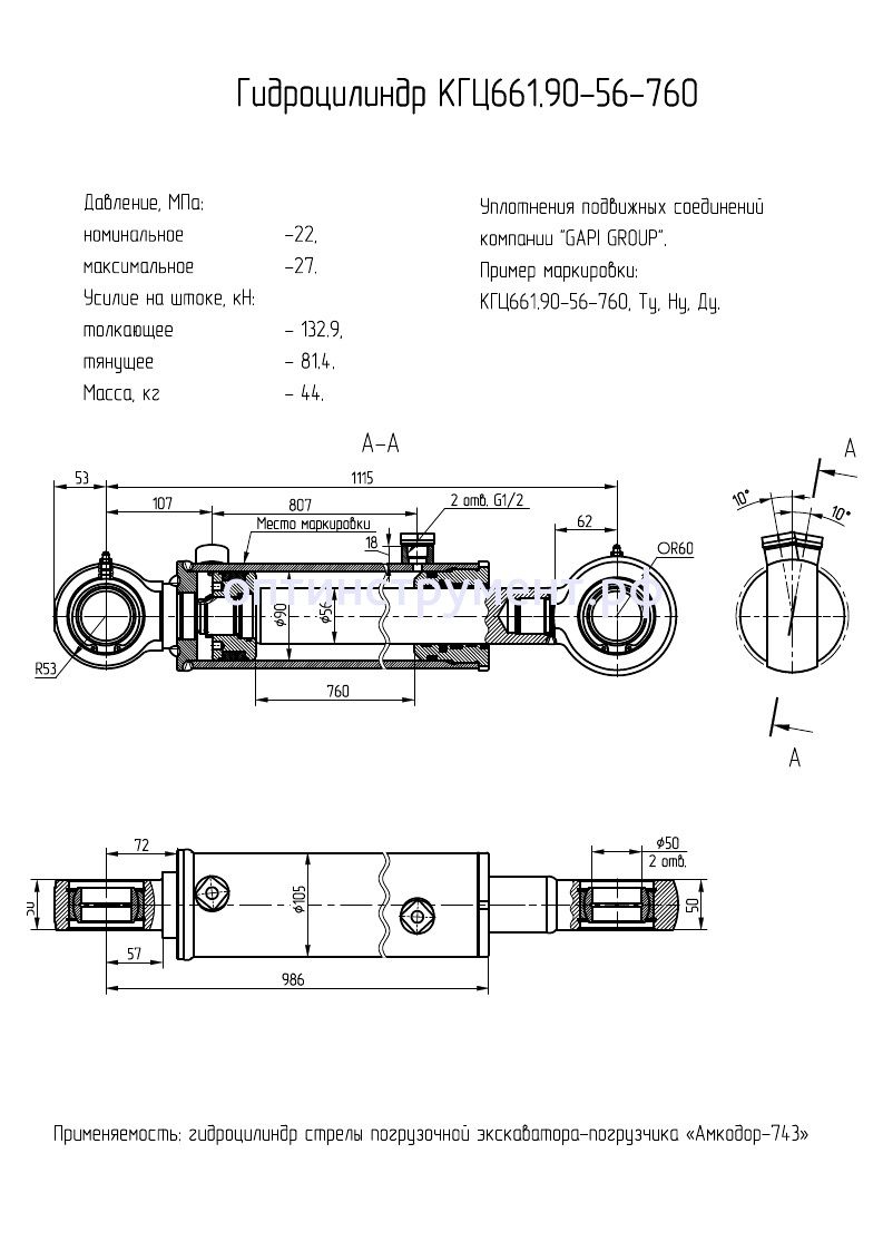 Гидроцилиндр стрелы погрузочной экскаватора-погрузчика «Амкодор-743» КГЦ 661.90-56-760 в продаже по цене 22 440 руб. в Интернет-магазине Проф-инструмент с доставкой в Оренбурге и Оренбургской области. Звоните по телефону +8 (800) 302-10-51.