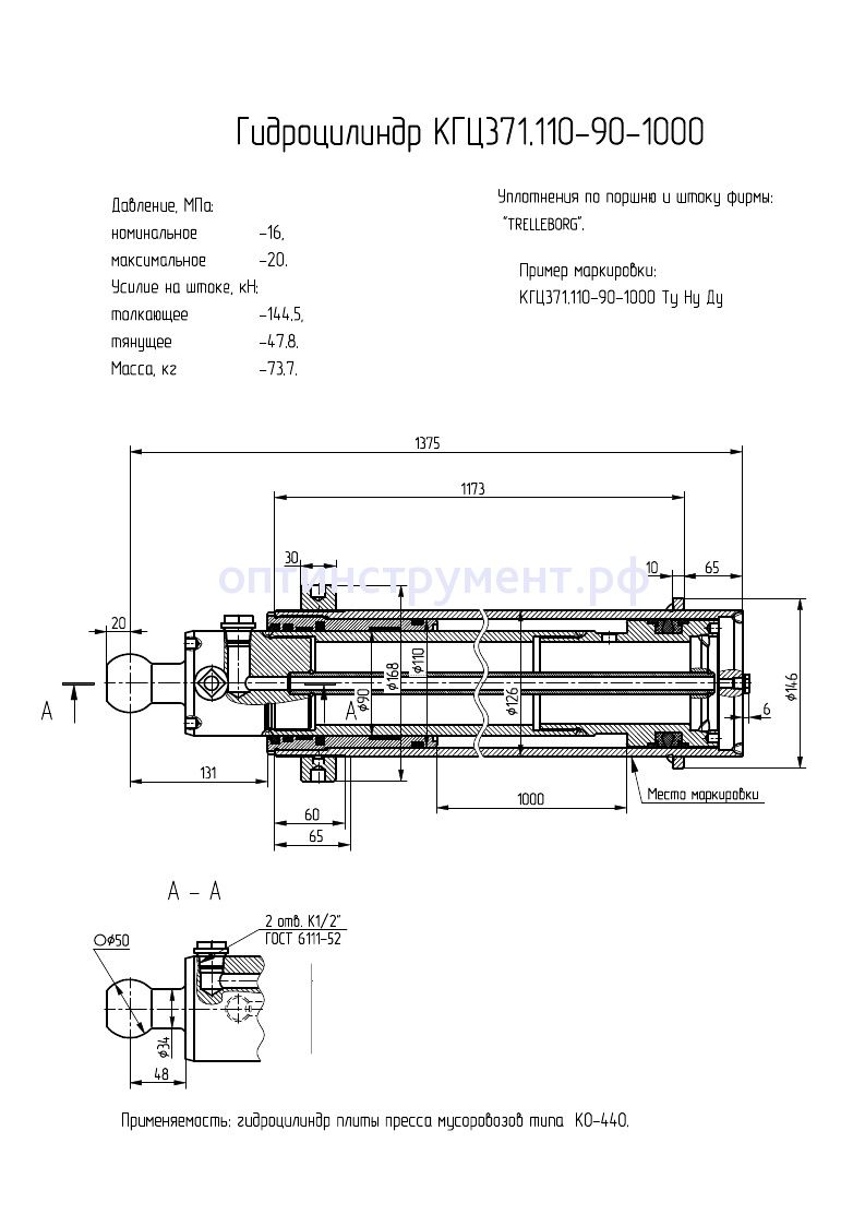 Гидроцилиндр плиты пресса мусоровозов типа "КО-440" КГЦ 371.110-90-1000 в продаже по цене 0 руб. в Интернет-магазине Проф-инструмент с доставкой в Оренбурге и Оренбургской области. Звоните по телефону +8 (800) 302-10-51.