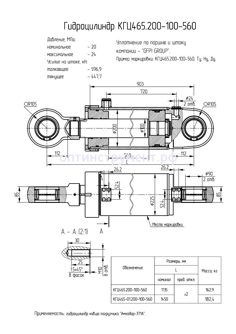 Гидроцилиндр ковша погрузчика "Амкодор-371А" КГЦ 465-01.200-100-560 в продаже по цене 85 500 руб. в Интернет-магазине Проф-инструмент с доставкой в Оренбурге и Оренбургской области. Звоните по телефону +8 (800) 302-10-51.