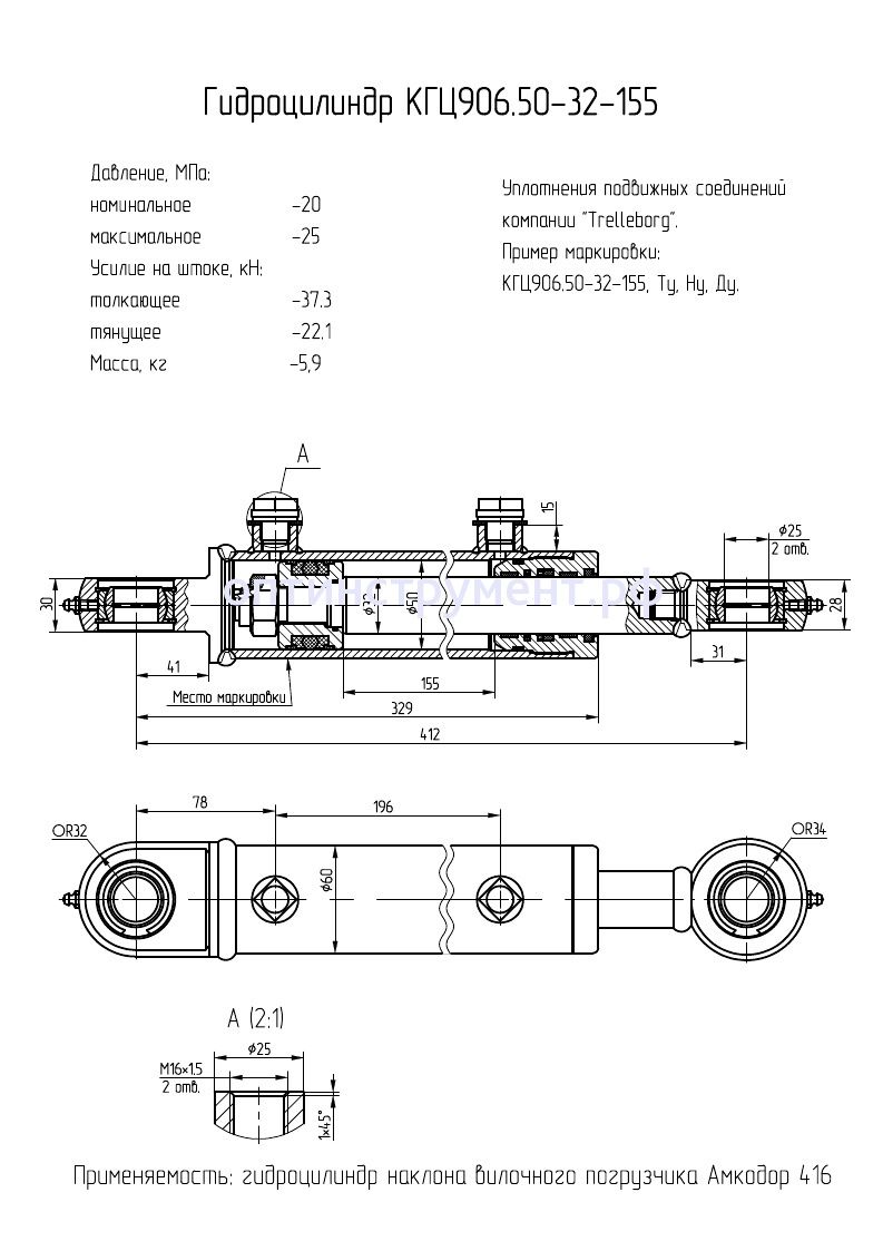 Гидроцилиндр наклона вилочного погрузчика "Амкодор 416" КГЦ 906.50-32-155 в продаже по цене 9 300 руб. в Интернет-магазине Проф-инструмент с доставкой в Оренбурге и Оренбургской области. Звоните по телефону +8 (800) 302-10-51.