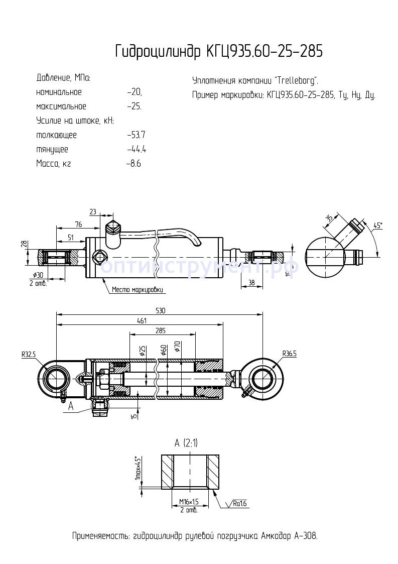 Гидроцилиндр рулевой погрузчика "Амкодор А-308" КГЦ 935.60-25-285 в продаже по цене 14 025 руб. в Интернет-магазине Проф-инструмент с доставкой в Оренбурге и Оренбургской области. Звоните по телефону +8 (800) 302-10-51.