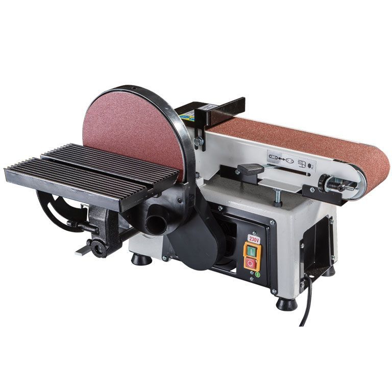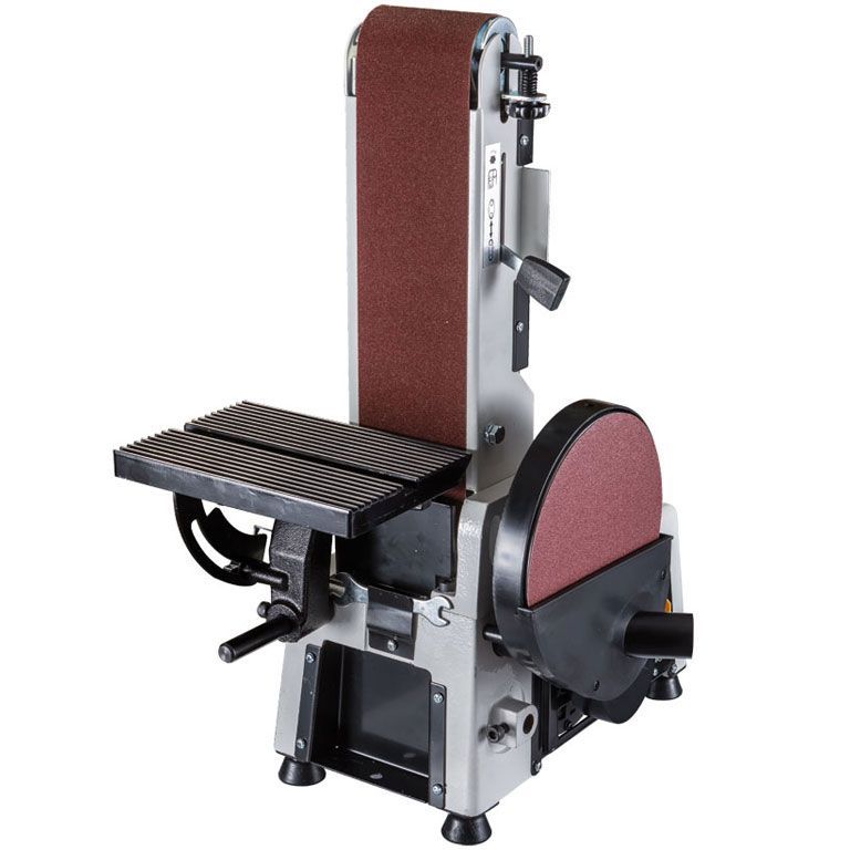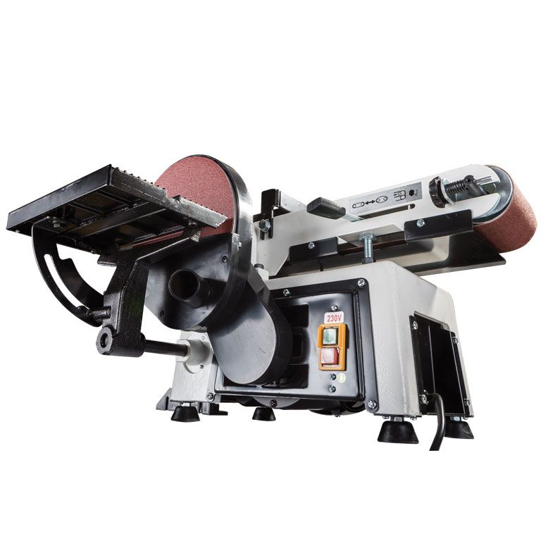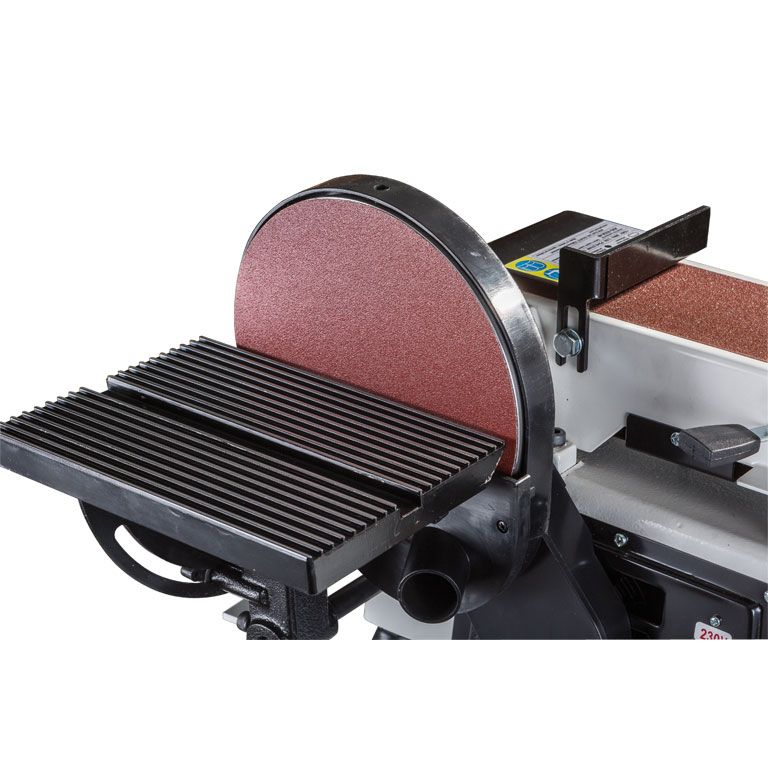 Тарельчато-ленточный шлифовальный станок JSG-233A-M для профессионального применения в частных столярных мастерских. Это относительно компактная модель, предназначенная для настольного размещения, но сделанная точно и основательно. Корпус выполнен литым из чугуна, что повышает устойчивость и способствует снижению вибраций при работе. Рабочий стол из алюминиевого литья и установлен на мощном поворотном кронштейне с дополнительной опорой, увеличивающей жесткость. В зависимости от необходимости его монтируют напротив тарельчатого или ленточного шлифовального узла.