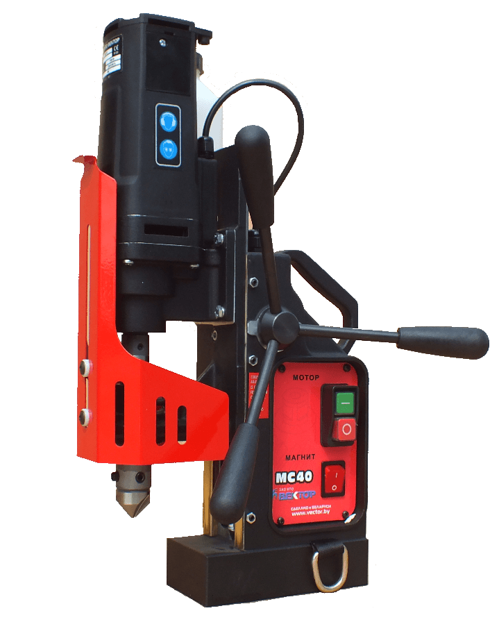 Еще важная отличительная особенность магнитного станка так это то, что есть возможность применения корончатого сверла до 50 мм и обычного сверла до 23 мм, а также переносимая возможность сверлильной машины делает его незаменимым и идеальным заменителем стационарного станка. За счет своего удобства, простоты, и не менее важно, мобильности, магнитная сверлильная машина МС-40 экономит денежные средства предприятию.