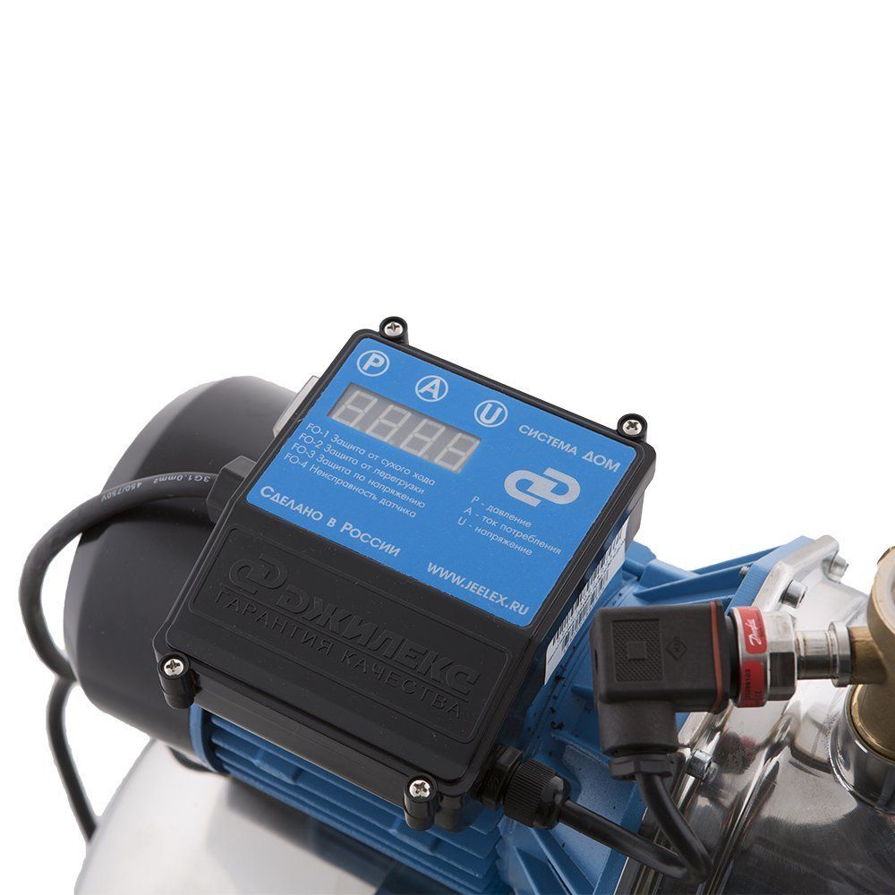 Система автоматического водоснабжения Джилекс Джамбо 70/50 Н-50 ДОМ состоит из поверхностного насоса со встроенным контроллером управления, датчика давления, гидроаккумулятора на 50 литров, соединительной арматуры и электрокабеля с вилкой.
