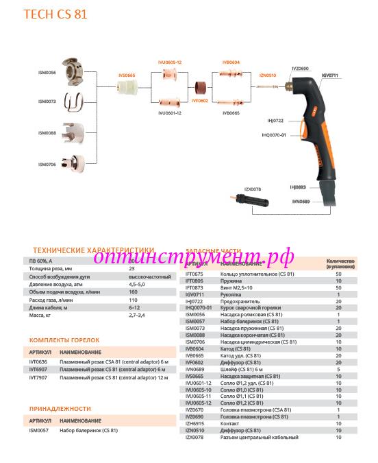 Плазмотрон Сварог TECH CS 81, 6 м, IVT6907 в продаже по цене 13 057 руб. в Интернет-магазине Проф-инструмент с доставкой в Оренбурге и Оренбургской области. Звоните по телефону +8 (800) 302-10-51.