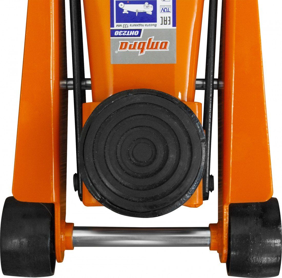 Гидравлический двухплунжерный подкатной гаражный домкрат OMBRA ОНТ 230 грузоподъемностью 3 т. Применяется в качестве скоростного подъемного механизма в условиях предприятий автотехобслуживания, шиномонтажных мастерских.