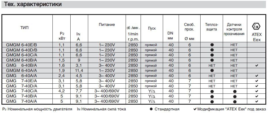 Насосные агрегаты типа GMG - погружные с открытым многолопастным рабочим колесом и блоком измельчения на всасывании. Проточная часть насоса, рабочие колеса выполнены из чугуна; блок измельчения - из нержавеющей стали AISI 440.