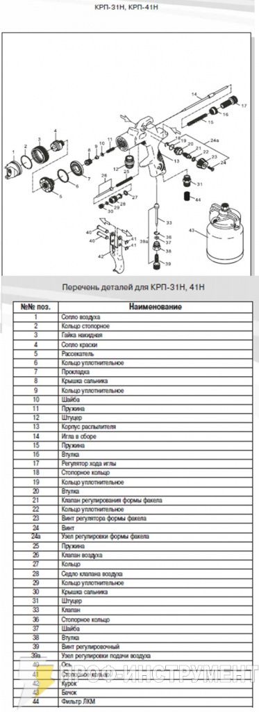 | 2 | поз. 4; КРП- 41В,41Н, сопло краски Ф 1,7мм | 1 |