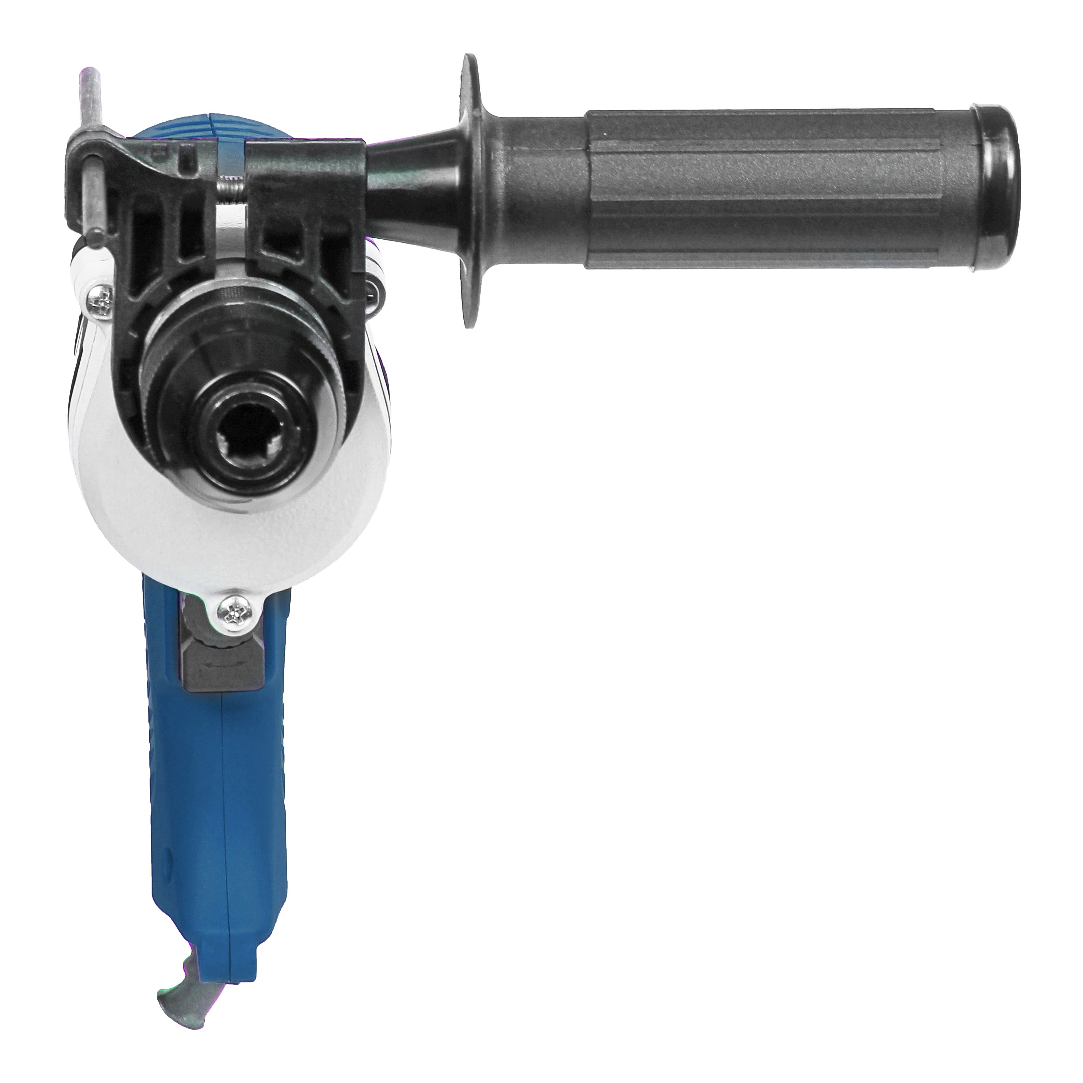 - переключатель режимов работы сверление/сверление с ударом расположен на верхней части корпуса редуктора и не выступает за габарит корпусных деталей;